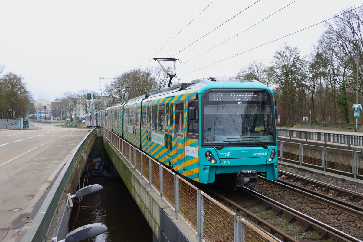 VGF U-Bahn Frankfurt Bombardier Flexity Swift U5 Wagen 891 am 26.02.26 in Frankfurt am Main auf der Linie U7