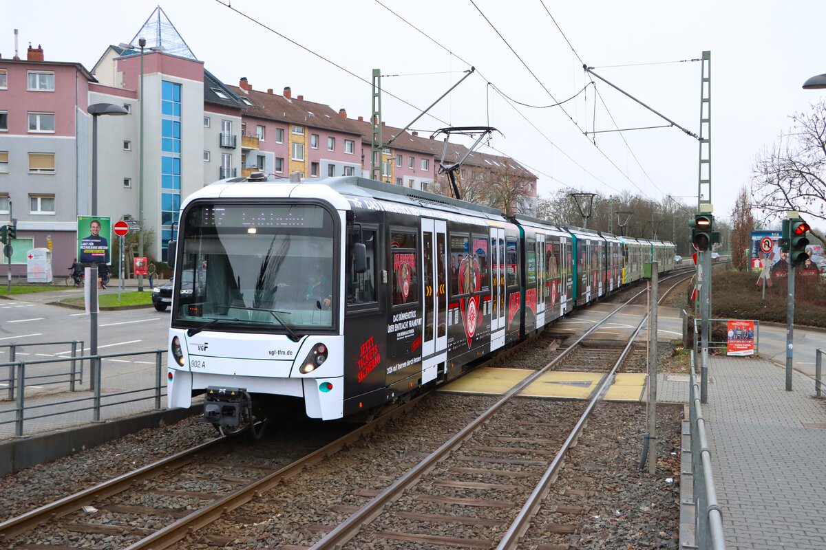 VGF U-Bahn Frankfurt Bombardier Flexity Swift U5 Wagen 902 am 26.02.26 in Frankfurt am Main auf der Linie U7