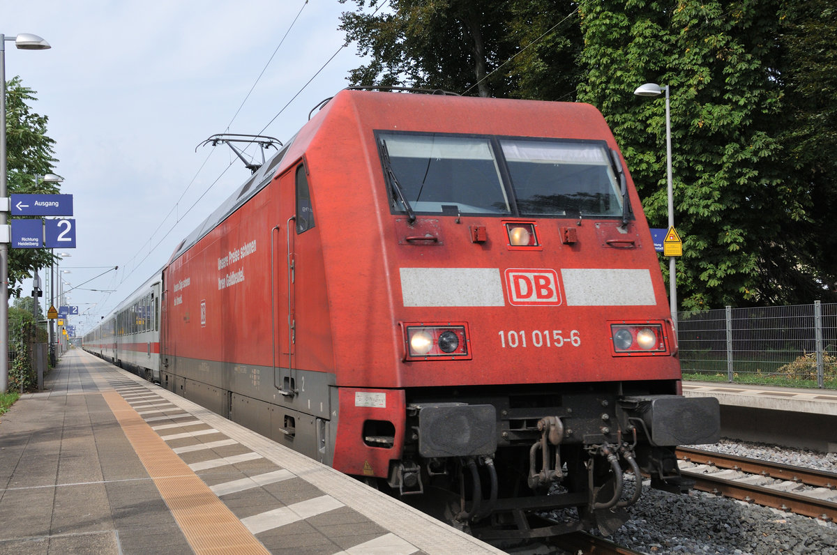 185 582 @ Heppenheim von ende Gleis 2 (innerhalb des markierte Sicherheitsbereich) am 30.08.2017 aufgenommen. Um so eine Perspektiv zu bekommen man kniet, benutzt etwas zoom und richtete das Objektive zwischen die obere und mittlere Balken des Barriere. Peter Nowt