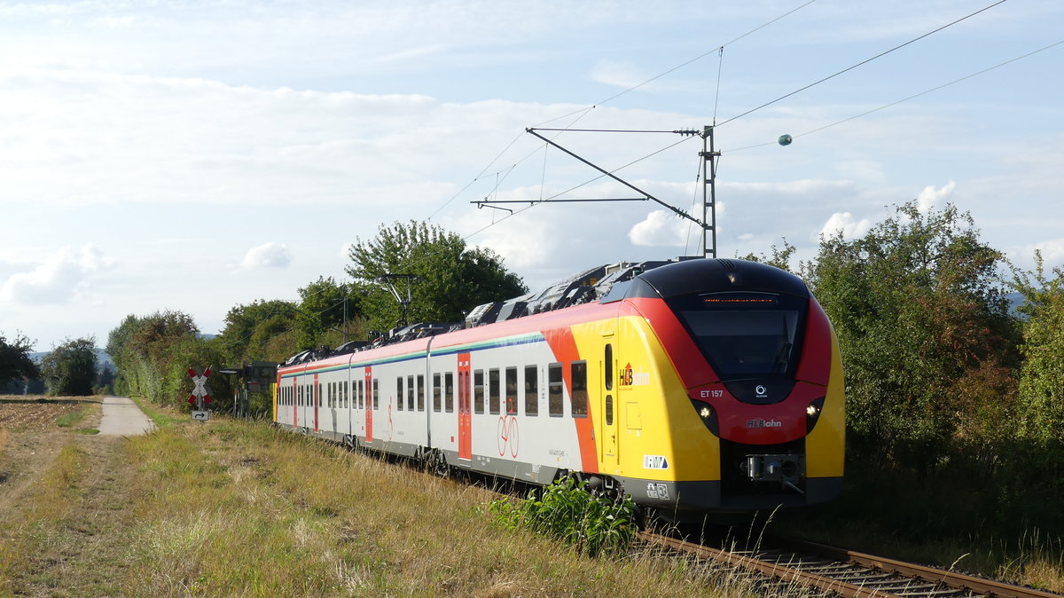 Am 3. November 2018 fanden auf der RB11 Frankfurt Höchst - Bad Soden Vorführungsfahrten mit einem AVG-Stadtbahntriebwagen statt. Damit sollte für das Projekt "Regionaltangente West", eine geplante Stadtbahnstrecke westlich von Frankfurt, geworben werden. Hier ist eine RB11 nach Frankfurt Höchst hinter Sulzbach (Taunus) zu sehen. Aufgenommen am 3.11.2018 14:49 Br111 Fan