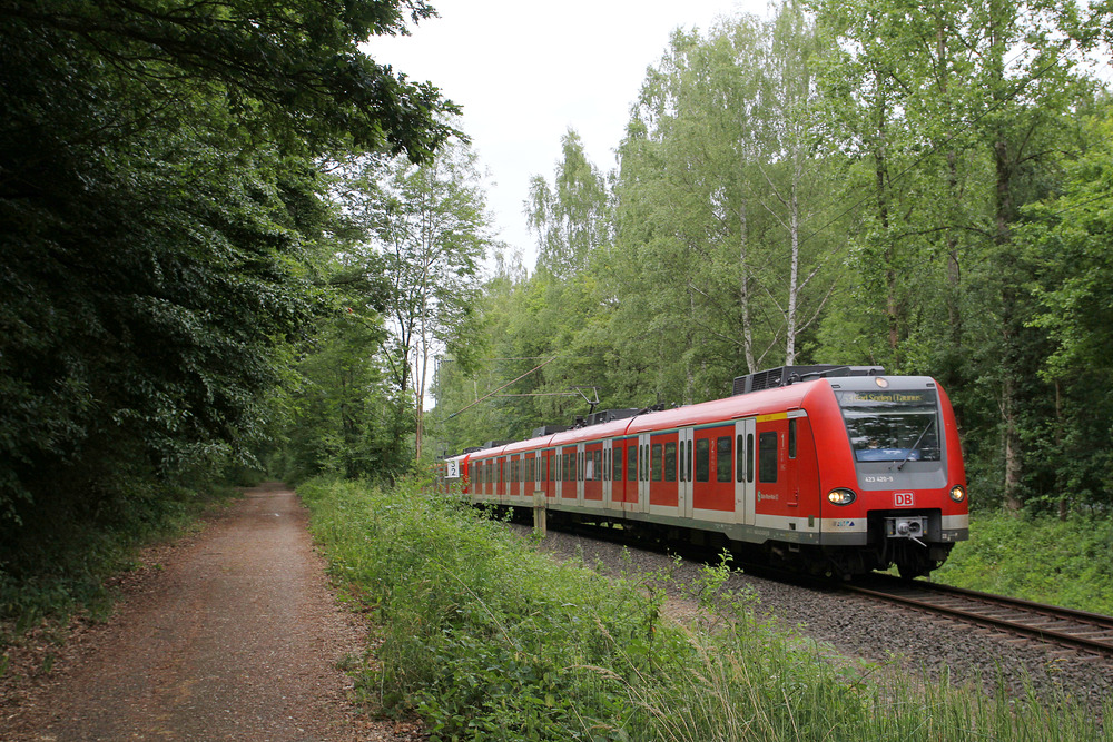 Zwischen den Stationen "Schwalbach Limes" und "Sulzbach Nord" durchfährt die S-Bahn ein recht großes Waldgebiet.