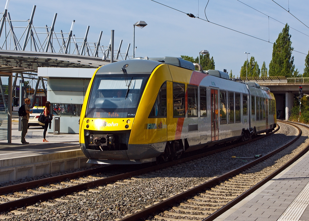 Dieseltriebwagen VT 276 der HLB - Hessische Landesbahn (95 80 0648 016-3+95 80 0648 516-2 D-HEB) als RB 25 Lahntalbahn (Limburg/Lahn – Wetzlar – Gießen - Fulda), Zuglauf HLB24809, bei Halt im Bahnhof Wetzlar.