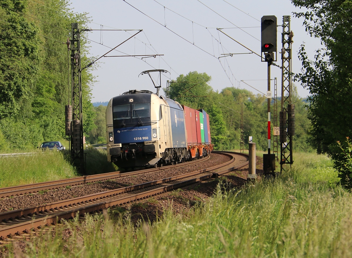 185 570-9 war am 22.05.2014 mit Containerzug in Richtung Süden unterwegs. Aufgenommen zwischen Eschwege West und Wehretal-Reichensachsen. Jens Baumhauer