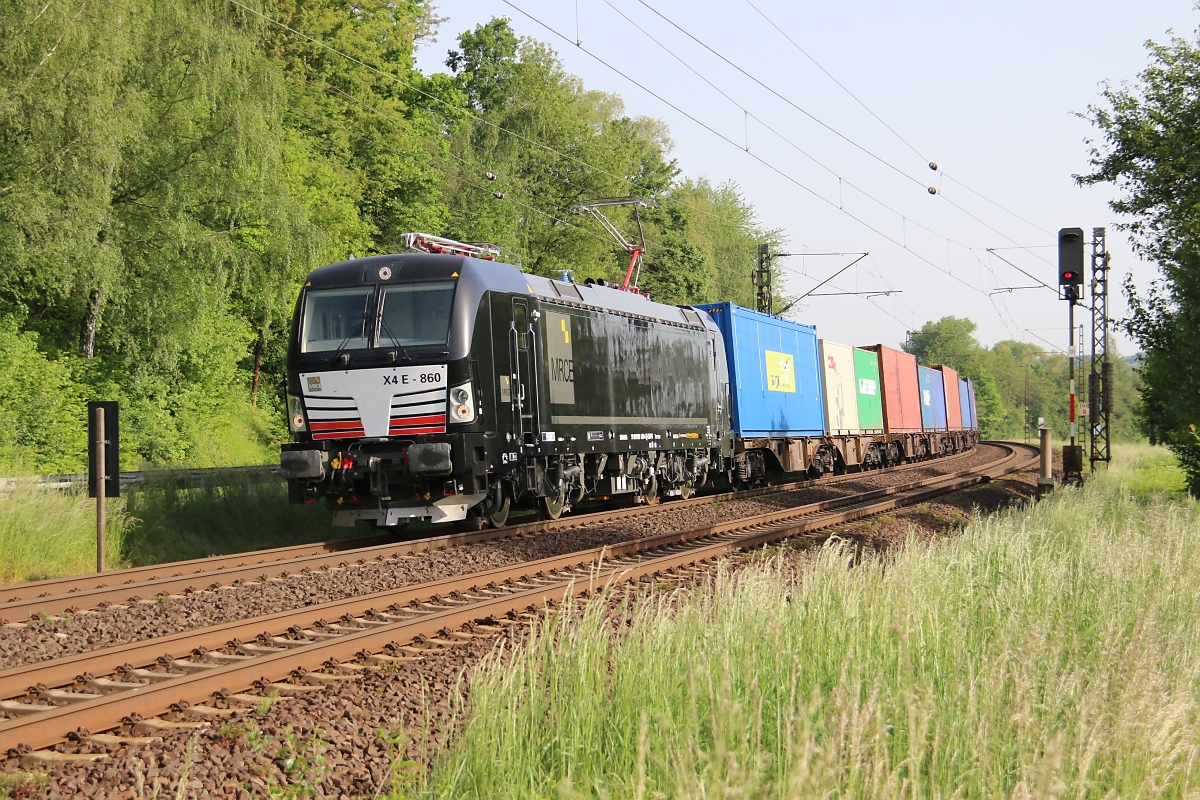 193 857 mit geschlossenen ARS-Autotransportwagen in Fahrtrichtung Norden. Aufgenommen am 22.05.2014 zwischen Eschwege West und Wehretal-Reichensachsen. Jens Baumhauer