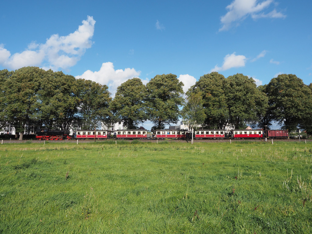 Hier ist der "100-jährige Zug" in voller Breite, kurz nach der Ausfahrt aus Bad Doberan.
