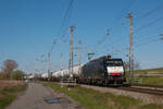 Noch im schwarzen MRCE-Farbkleid, aber schon mit Akiem Logos ist 189 844-4 mit einem Kesselwagenzug aus dem Rostocker Seehafen in Richtung Schwerin unterwegs. Fotografiert am 23.04.2023. Christian Geschonneck