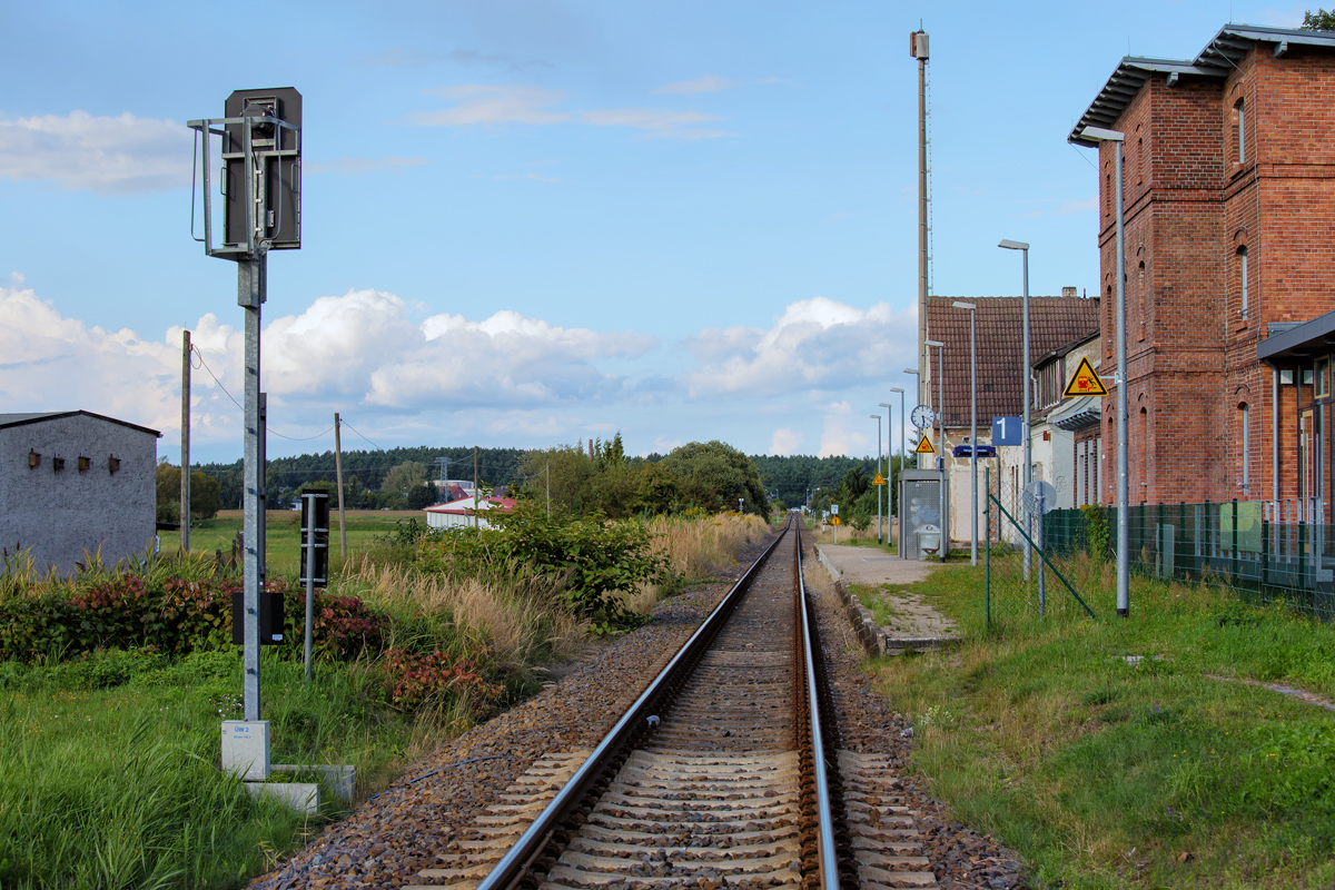 RE 6 nach Bützow vor der Umlaufsperre und somit auf Höhe des ehemaligen Befehlsstellwerkes Gumnitz, von dem nichts mehr zu sehen ist. - 20.03.2014 Gerd Wiese