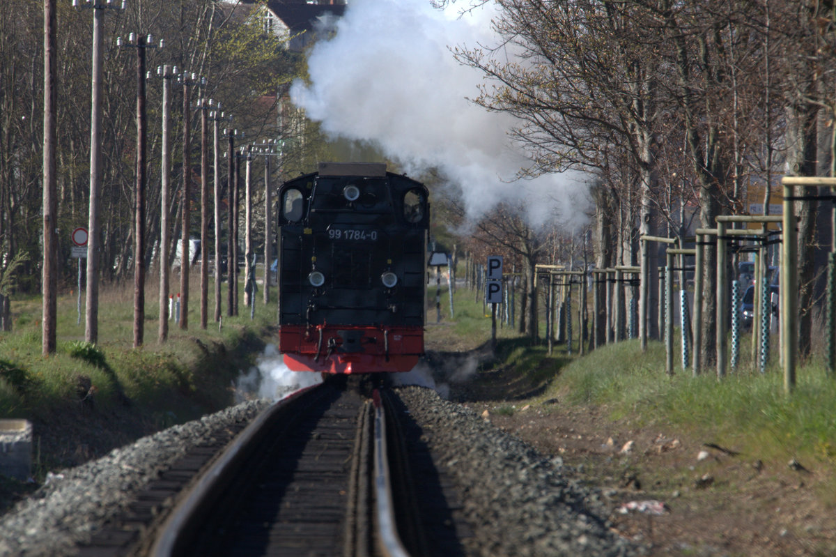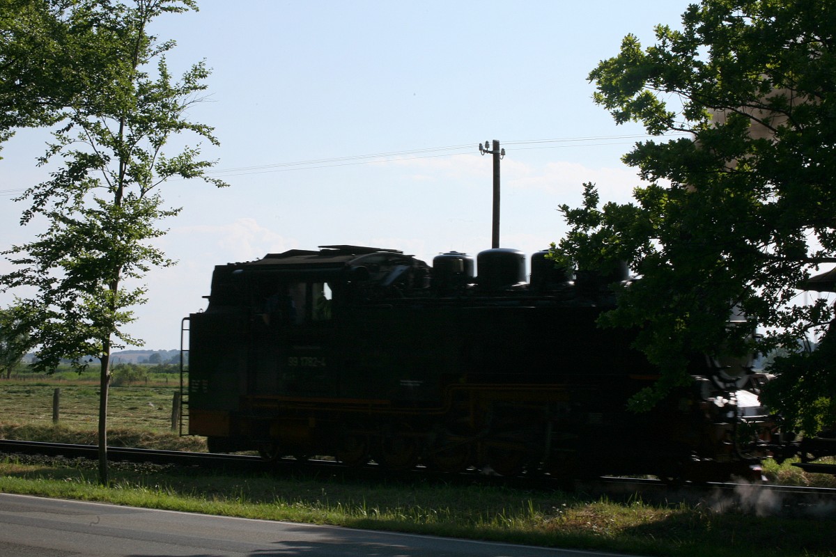 Eigentlich sollte es ein Portrait von 99 1784-0 werden, aber der veflixte Flixbus fuhr ins Bild und verwirrte zusätzlich den Autofokus ..., zwischen Sellin und Baabe.