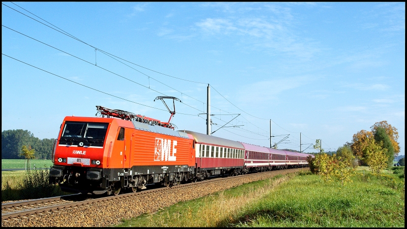 Anfang Oktober verschlug es WLE 81 das erste Mal in den äußersten Nordosten. Nachdem sie ja schon in der Woche die Bierzüge nach München bespannt, lässt sie auch am Wochenende das Thema Alkohol in Form der Tanzzüge von Müller-Touristik nicht los. Das Foto zeigt sie am 10.10.2010 auf der Rücktour von Binz nach Köln. Mit HG geht es elegant durch die Kummerower Kurve ... utz utz utz itz itz itz ... ;) Jens-Peter Schlör