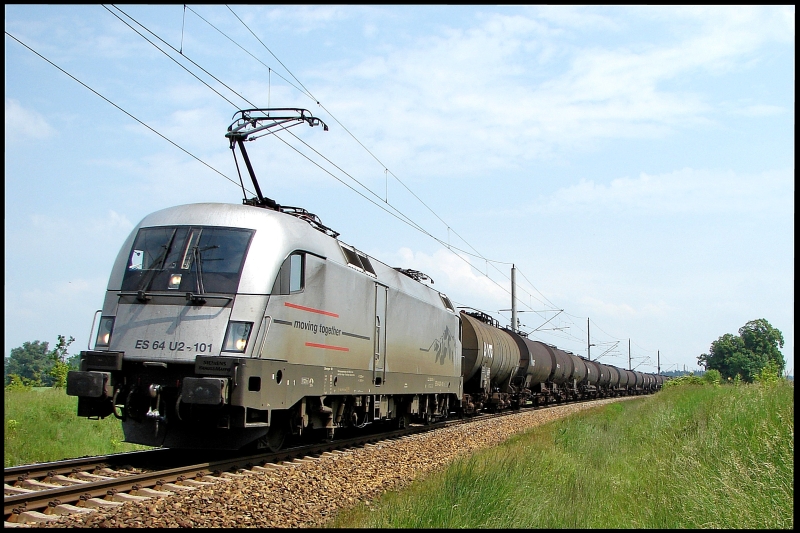 Gut 14 Tage nach einer Verjüngungskur in Dessau präsentiert sich 101 075-0 mit IC 2184 Hannover-Binz am 29.05.2010 in typisch vorpommerscher Mailandschaft zwischen Velgast und Kummerow. Jens-Peter Schlör