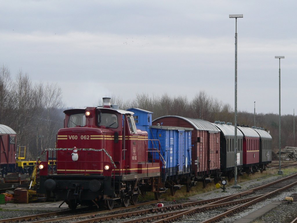 Bahnhof Norden - V60 062 rangiert den historischen sonderzug der Museumseisenbahn Küstenbahn Ostfriesland zum Bahnsteig. Er hat eine 17 km lange Neujahrsfahrt nach Dornum vor sich. 1.1.2013, Norden. Mehr Informationen unter http://www.mkoev.de Thomas Wendt