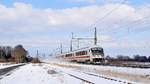 ELP 2159 221-1 mit Werbung  CONNECTING WORLDS WITH MOBILE INFRASTUCTURE , vermietet an Retrack (Name: Nina), zieht TRANSCEREALES-Getreidezug in Richtung Osnabrück (Diepholz, 01.02.2024).