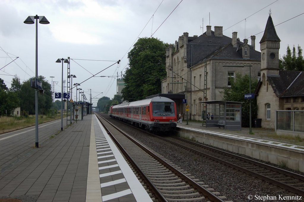 Auf Gleis 1 in Königslutter steht die RB (RB 14507) nach Helmstedt. Gezogen hatte die 143 018-0. 11.06.2011