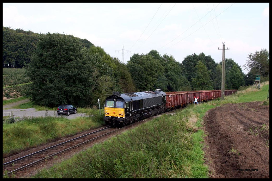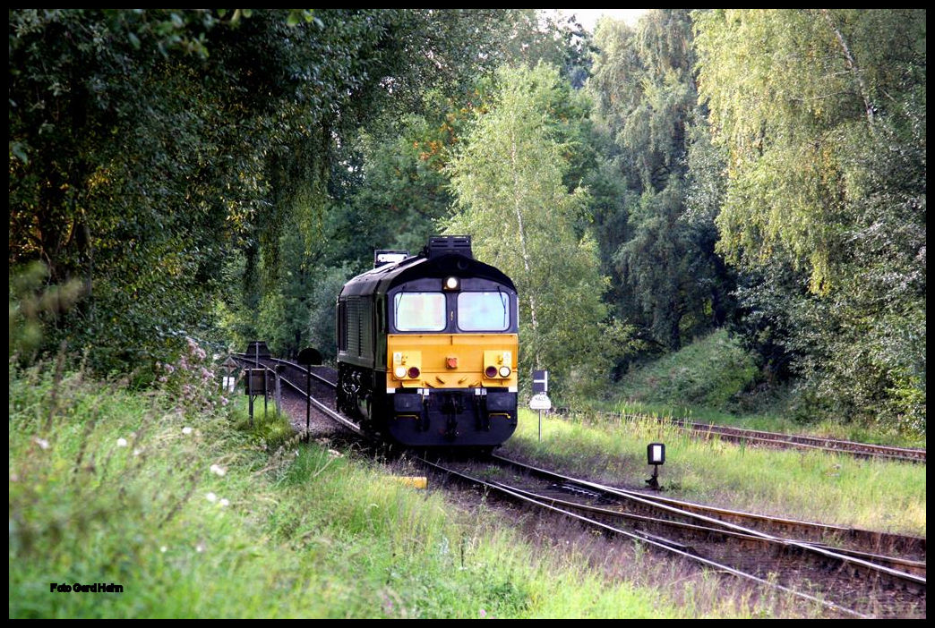 Class 66 8653-01 rangiert hier am 21.09.2017 an der Zufahrt zum Werksgelände in Georgsmarienhütte.