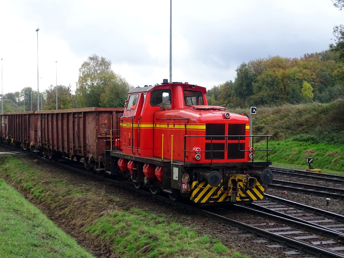 Die Lok GMH 7 (MG530C von Klöckner-Humboldt-Deutz) der Georgsmarienhütten-Eisenbahn rangiert einen Zug mit Stahlschrott, der kurz zuvor in den Werksbahnhof eingefahren ist. 02.11.2018