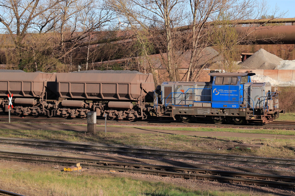 Verkehrsbetriebe Peine Salzgitter Lok 623 (Vossloh Locomotives G6 D) mit Sinterzug