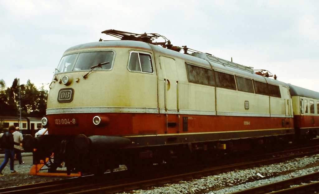 103 004-8, ausgestellt in Wanne Westhafen beim Tag der offenen Tür bei der Wanne-Herner Eisenbahn am ersten Wochenende im September 1983. Manfred Kopka