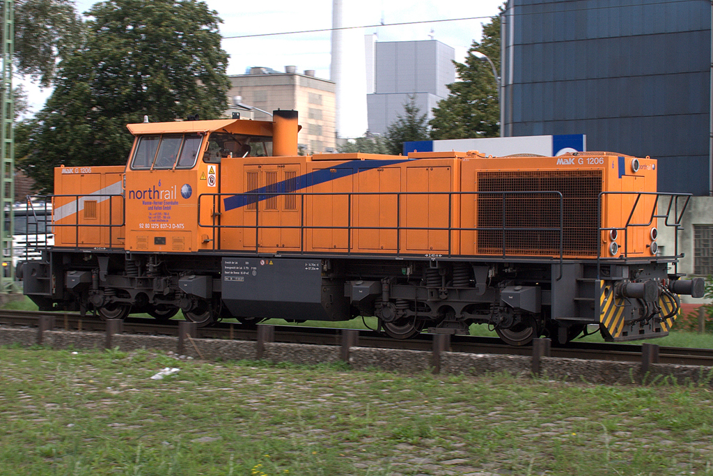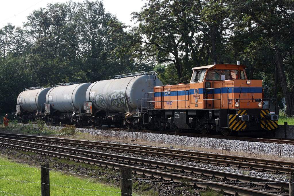 WHE 27 (MaK G1204BB, Nr.1000813, Baujahr 1983, 1120KW) mit einen 3-teiligen Kesselwagenzug im Bereich BÜ Heerstrasse. Wanne-Eickel 16.09.2011 Klaus Muhs