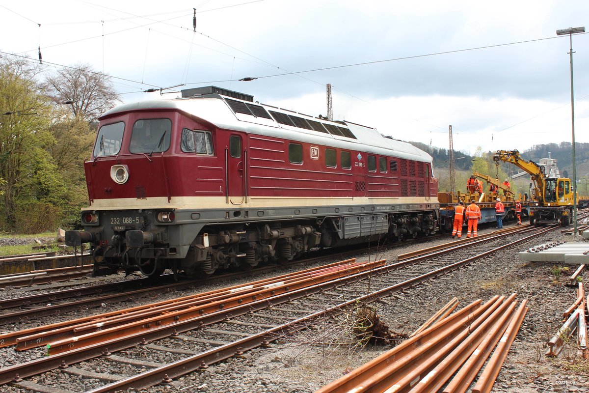 V300 DR 232 088-5 "Ludmilla" der EfW-Verkehrsgesellschaft mbH mit Arbeitszug in Grevenbrück/Westfalen Lennestadt 9280 1 232 088-5 D-EFW Martin Padberg