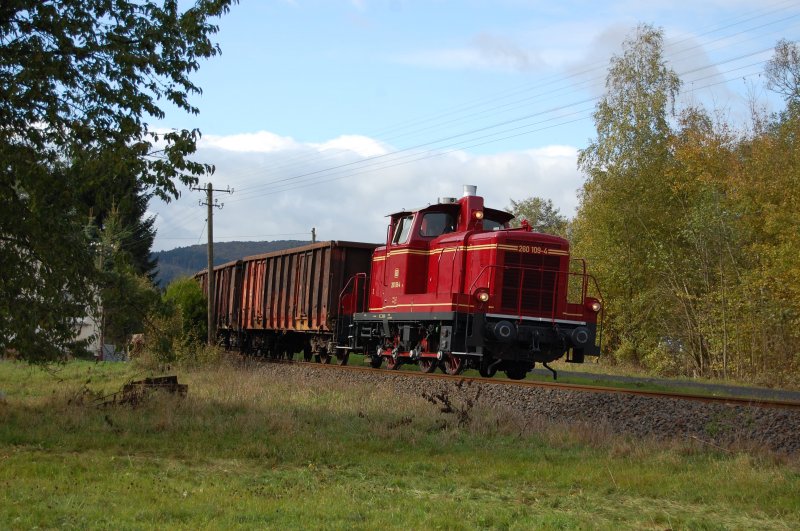 218 387-9 als Schublok für den historische0 TEE-Rheingold am 30.08.2009 im Bahnhof Bad Laasphe, hier war an diesem Wochenende Bahnhofsfest. Die Strecke keine Elektrisierung hat, kam ungewöhnliche Lokbespannung zum Einsatz: Vorne 218 105-5 in verkehrsrot, 3 Rheingoldwagen und 103 235-8 und hinten 218 387-9 in altrot. Der Zug verkehrte zwischen Marburg und Bad Laasphe (Kurhessenbahn) und konnte mit normalen Nahverkehrsticket befahren werden. Armin Schwarz