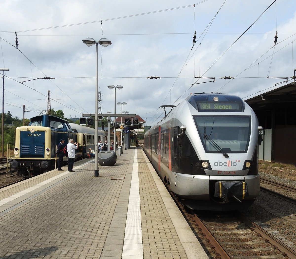 E-TRIEBWAGEN TRIFFT DIESEL-OLDIE IM BAHNHOF KREUZTAL