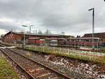 Bahnübergang am Nordkopf des Bahnhofs Rahden. Links die tote Strecke nach Sulingen - Bassum, rechts die noch im Museumsbetrieb bis Uchte betriebene Strecke nach Nienburg. 10.01.2025 Tobias Büers