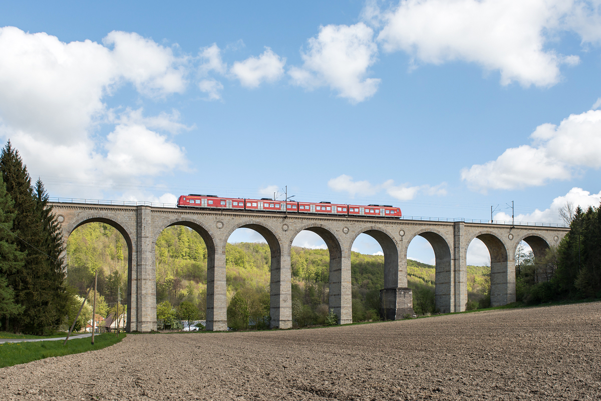 Ein ET der Baureihe 425 der S-Bahn Hannover überfährt am 04.05.2016 den kleinen Viadukt bei Altenbeken.