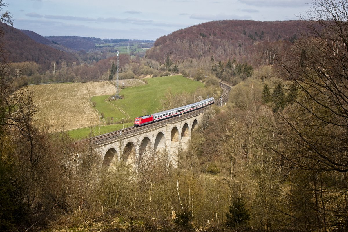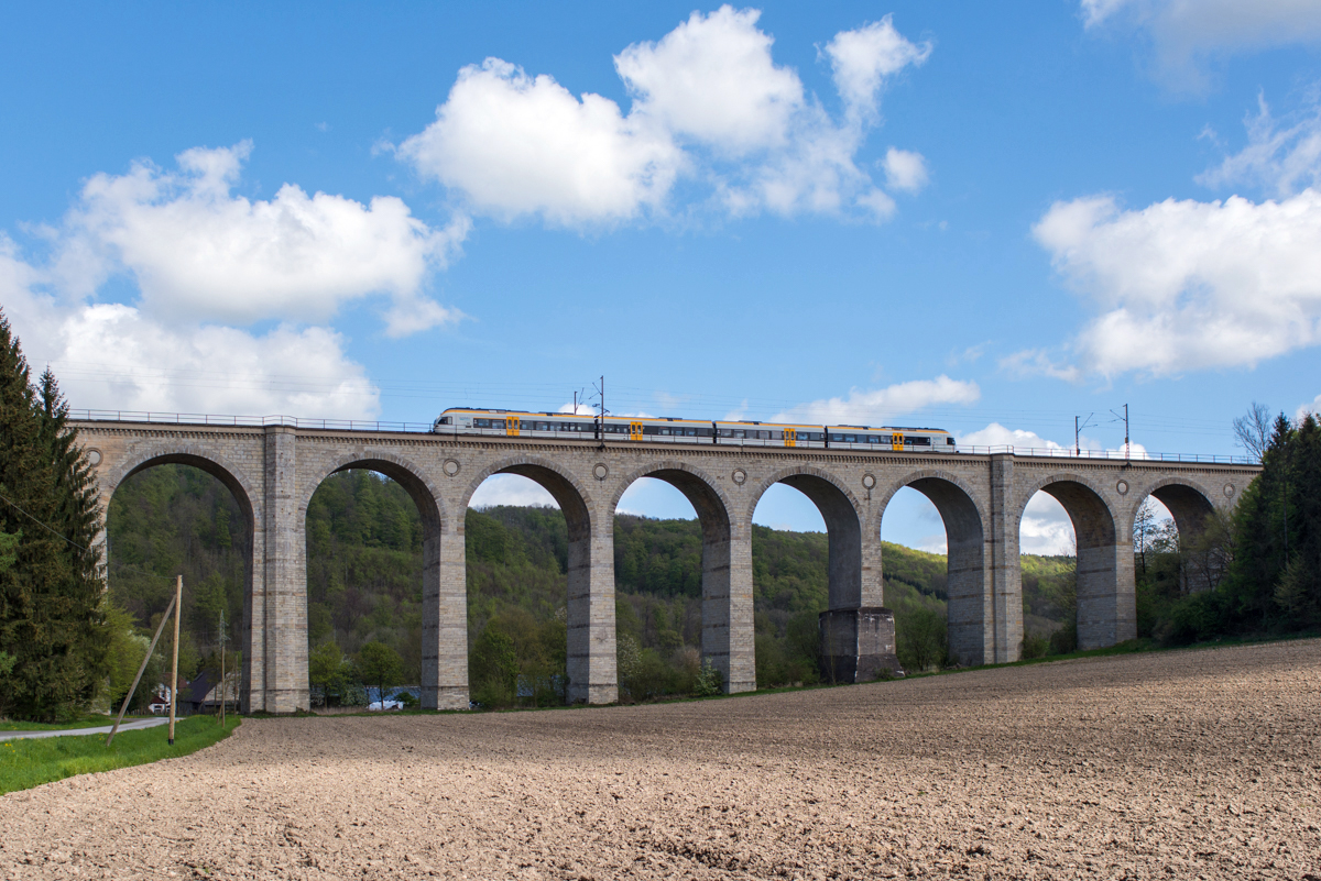 Ein Regionalzug der Eurobahn überfährt am 04.05.2016 den kleinen Viadukt bei Altenbeken.