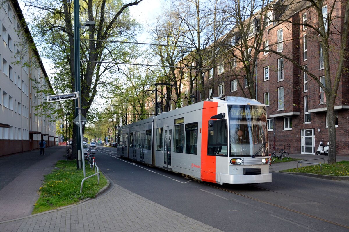 Ihre Zeit läuft ab auf dem RE13 ET 7.08 fährt als RE13 durch Düsseldorf Völklinger Straße in Richtung Neuss. Zum Ende des Jahres läuft der Vertrag auf dem RE13 aus und DB Start übernimmt die Linie. Dann sollen hier Flirt 3 eingesetzt werden.