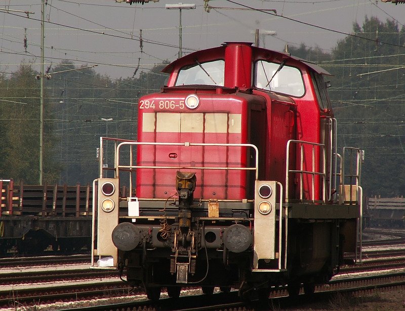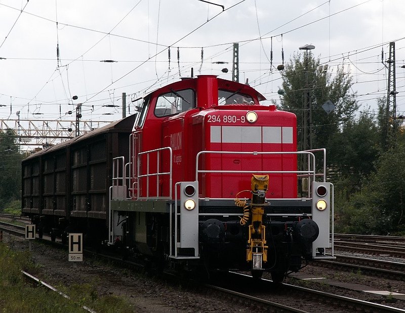 Bespannt mit einigen wenigen Güterwagen rauscht diese 294er in Richtung Duisburg am Haltepunkt "Entenfang" vorbei. Das Foto stammt vom 13.09.2007 Martin Kramer