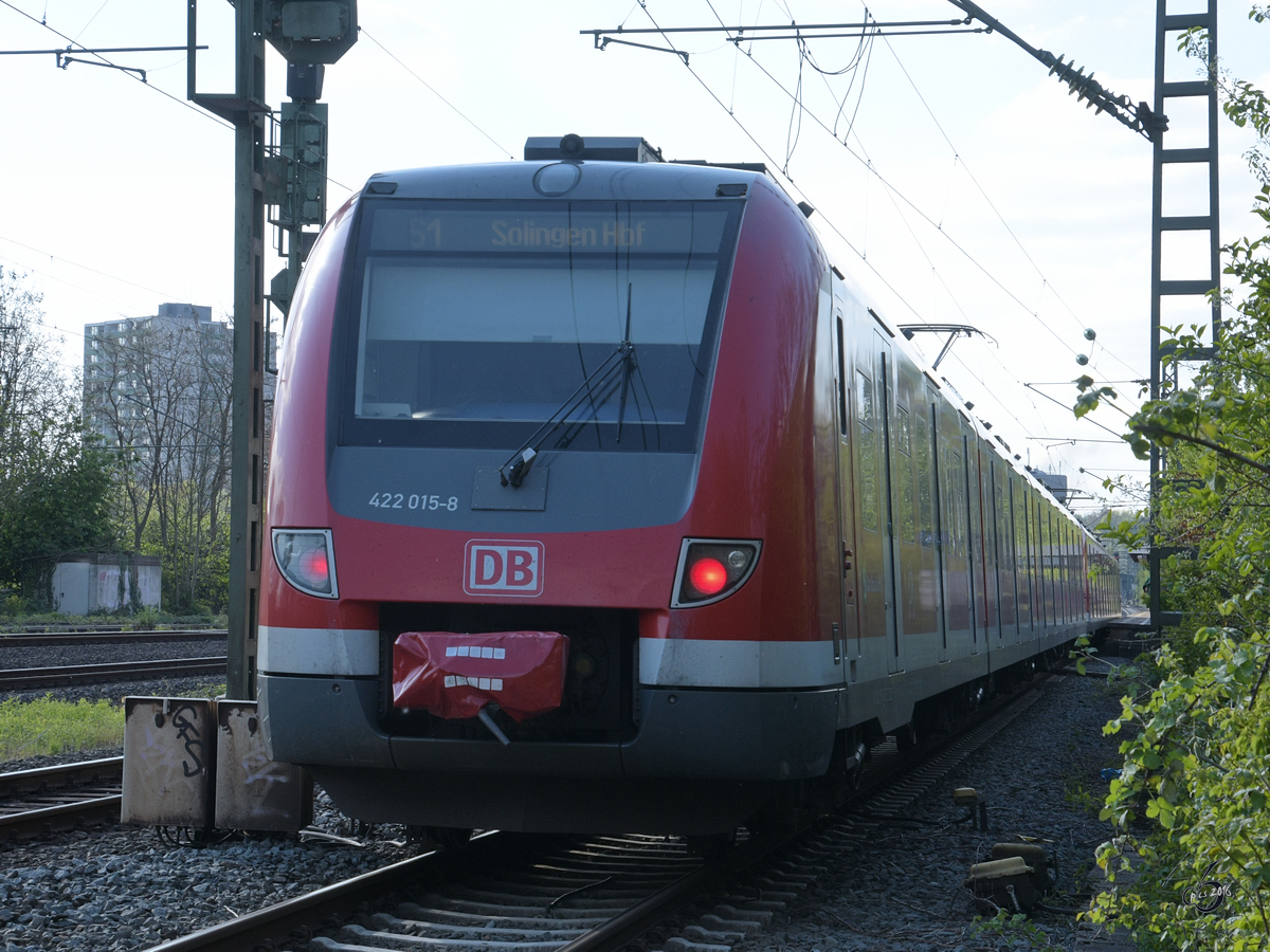 Die S1 (420 943-3) warten im Bahnhof Essen-Steele Ost auf die Weiterfahrt in Richtung Dortmund. (April 2017)
