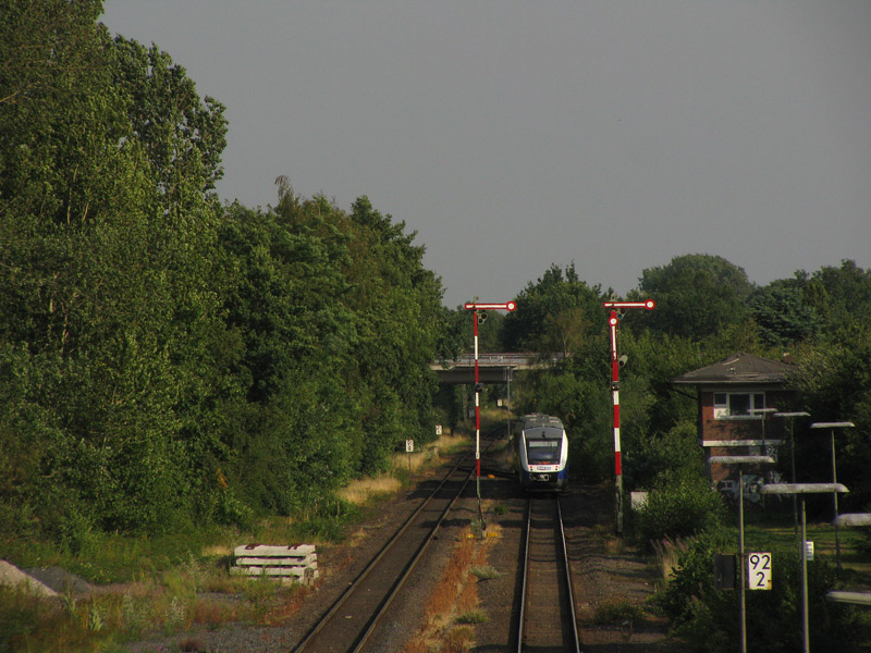 Noch einmal ein Blick auf die Formsignale an der Nordausfahrt des Bahnhofs Kevelaer mit dem aus Kleve eintreffenden 648 422 am 07.06.2021. Die Signale wurden am 17.08.2021 entfernt. Horst Lüdicke
