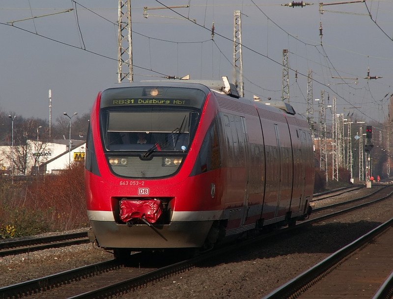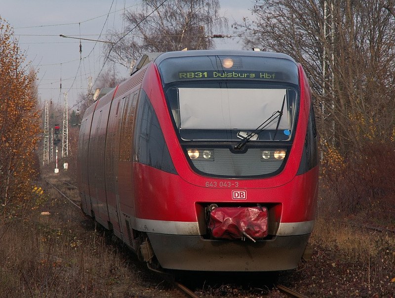RB 31 kurz vor der Einfahrt in den Moerser Bahnhof. Das Foto stammt vom 28.11.2007
