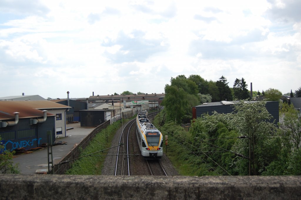 Zwei ET der Eurobahn Fahren durch die Eickenerkurve in Richtung Mönchengladbach Hbf. Fotografiert am 16.Mai2010 von der ehemaligen Eisenbahnbrücke der Rheinischen Eisenbahn Neersen/Rheydt-Morr. Andreas Strobel
