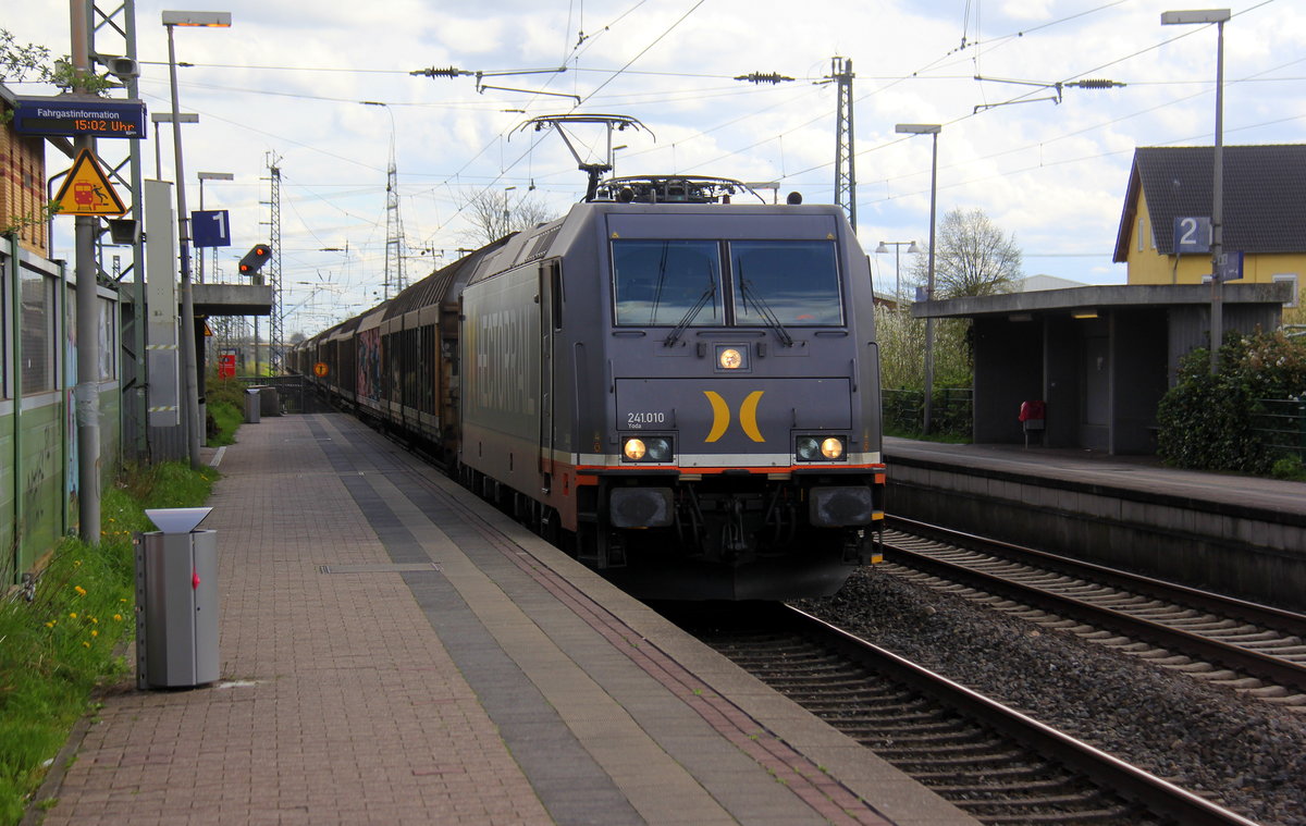 Hectorrail Yoda 241.010 kommt mit einem Papierleerzug aus Modena(I) nach Malmö(S) und kommt aus Richtung Köln-Süd,Köln-West,Köln-Nippes,Köln-Longerich,Köln-Chorweiler,Köln-Worringen,Dormagen-Bayerwerk,Dormagen und fährt durch Nievenheim in Richtung Neuss-Allerheiligen,Norf,Neuss-Süd,Neuss-Hbf,Neuss-Gbf.