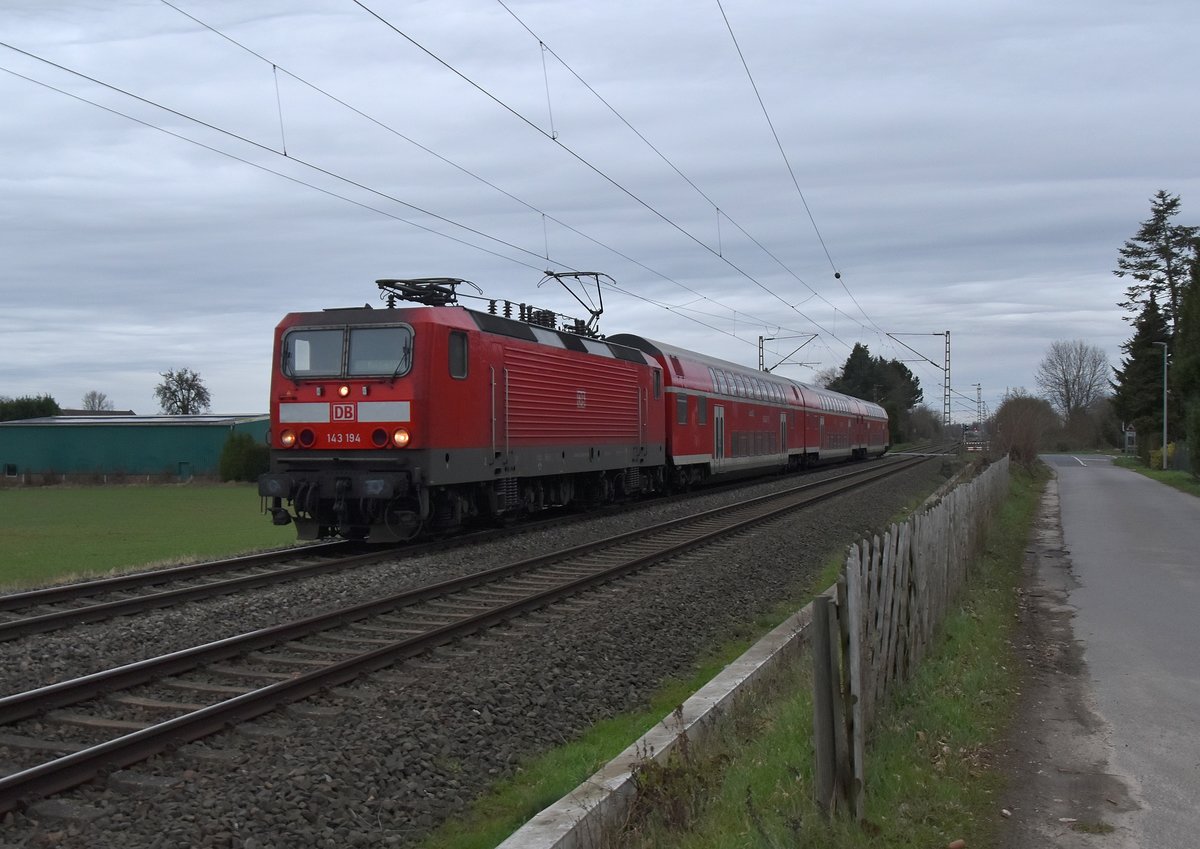 Noch fahren die RB27 teilweise als lokbespannte Züge, am Abend des 16.7.2019 kommt die 143 114 gen Grevenbroich am BÜ Fürther Hecke in Gubberath vors Objektiv. Andreas Strobel