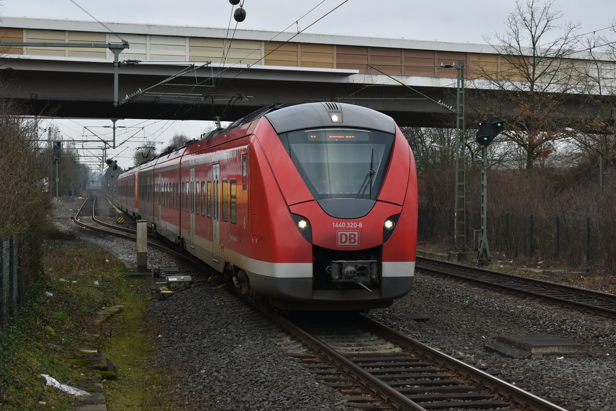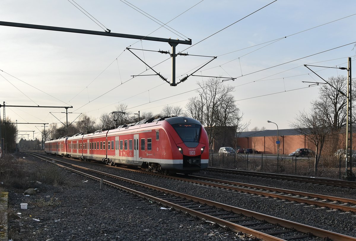 1440 306-7 führt einen S8-Zug von Mönchengladbach Hbf nach Wuppertal-Barmen am Donnerstag den 1.3.2018, hier fährt der Zug gerade in Korschenbroich ein. Andreas Strobel