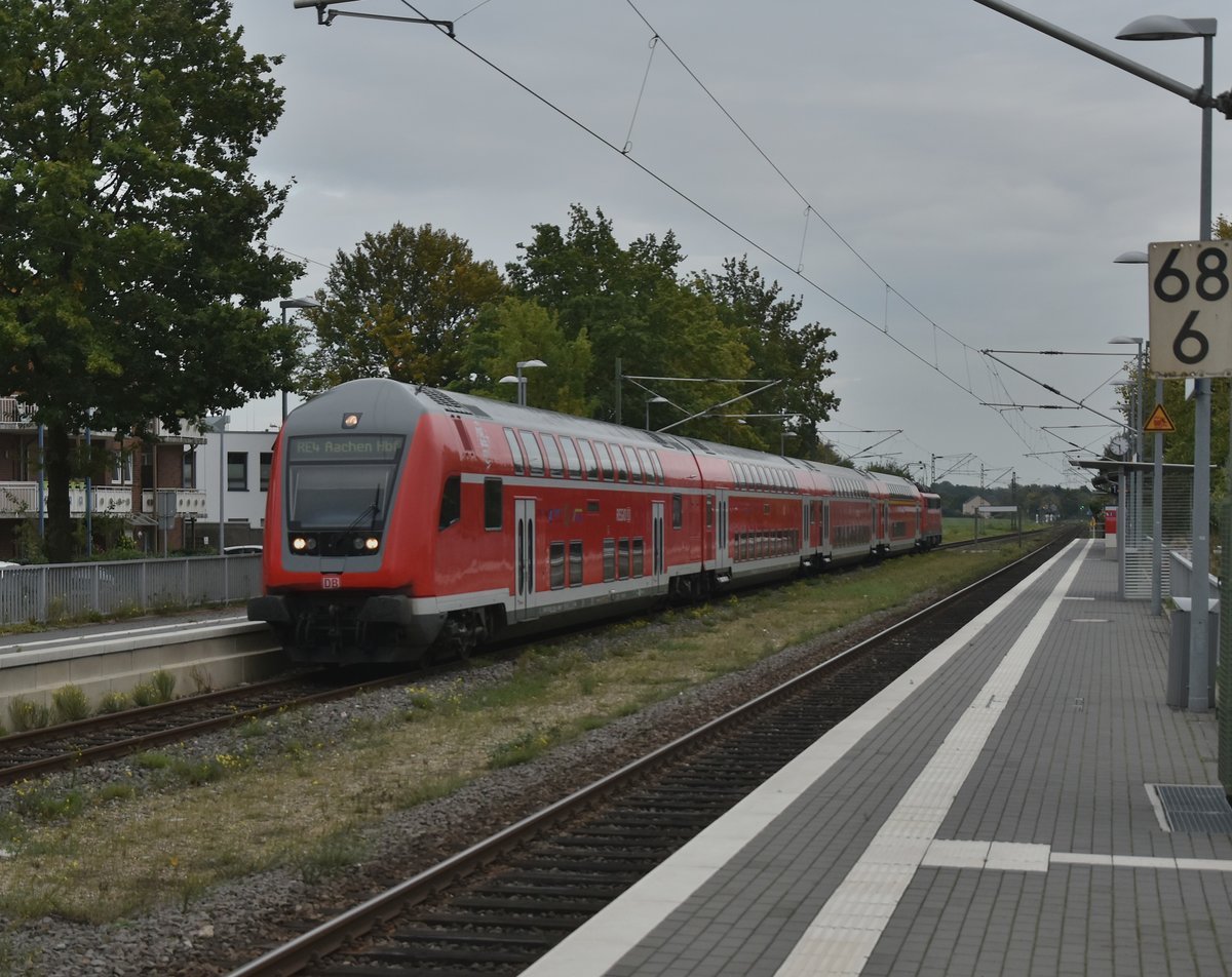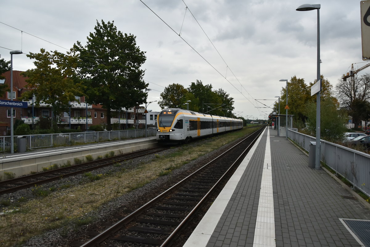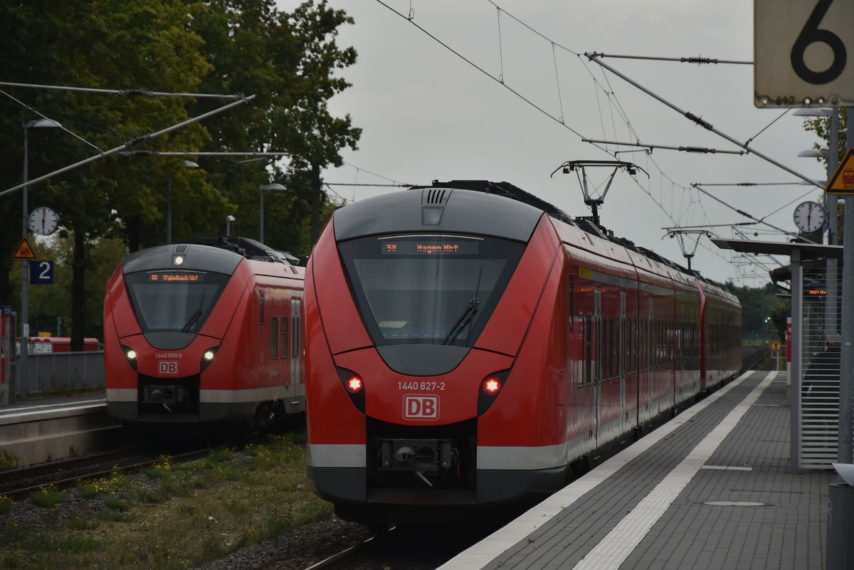 S-Bahntreffen in Korschenbroich am 29.9.2017, die Bahn im Vordergrund fährt gen Wuppertal und die andere S8 ist bald in Mönchengladbach. Andreas Strobel