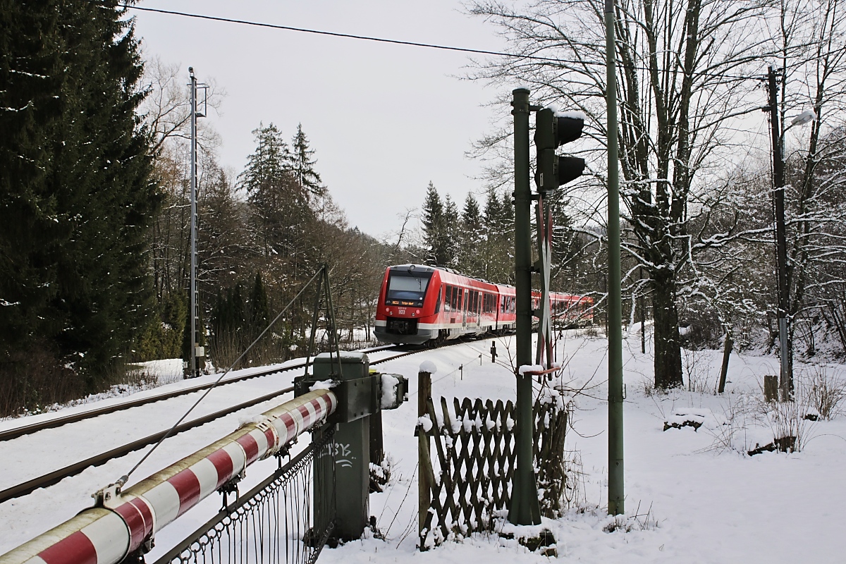 Am 28.02.2020 hat 620 016/516 mit seinem RE von Köln nach Trier gleich den Bahnhof Urft (Steinfeld) erreicht. Bei Temperaturen im Plusbereich sind die Unterschiede zwischen Schatten- und Sonnenseite schon gut erkennbar. Horst Lüdicke