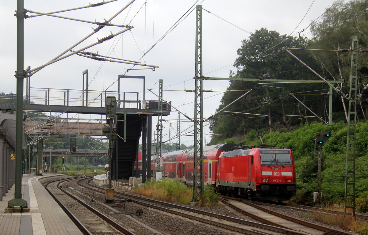 Ein Nachschuss von der 146 276 DB schiebt den RE1 aus Hamm-Westfalen nach Aachen-Hbf und fuhr in den Stolberger-Hbf ein und fuhr dann weiter in Richtung Aachen-Eilendorf,Aachen-Rothe-Erde,Aachen-Hbf.