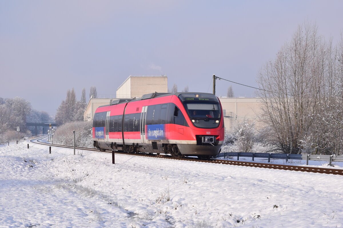 643 202 kommt von Eschweiler West in Richtung Eschweiler Nothberg gefahren und erreicht in Kürze den Haltepunkt Eschweiler Nothberg.