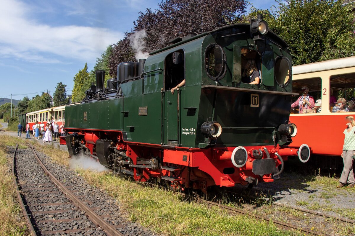 Die Dampflok 11sm der Brohltalbahn rangiert an das andere Zugende in Oberzissen am 07.09.2024.