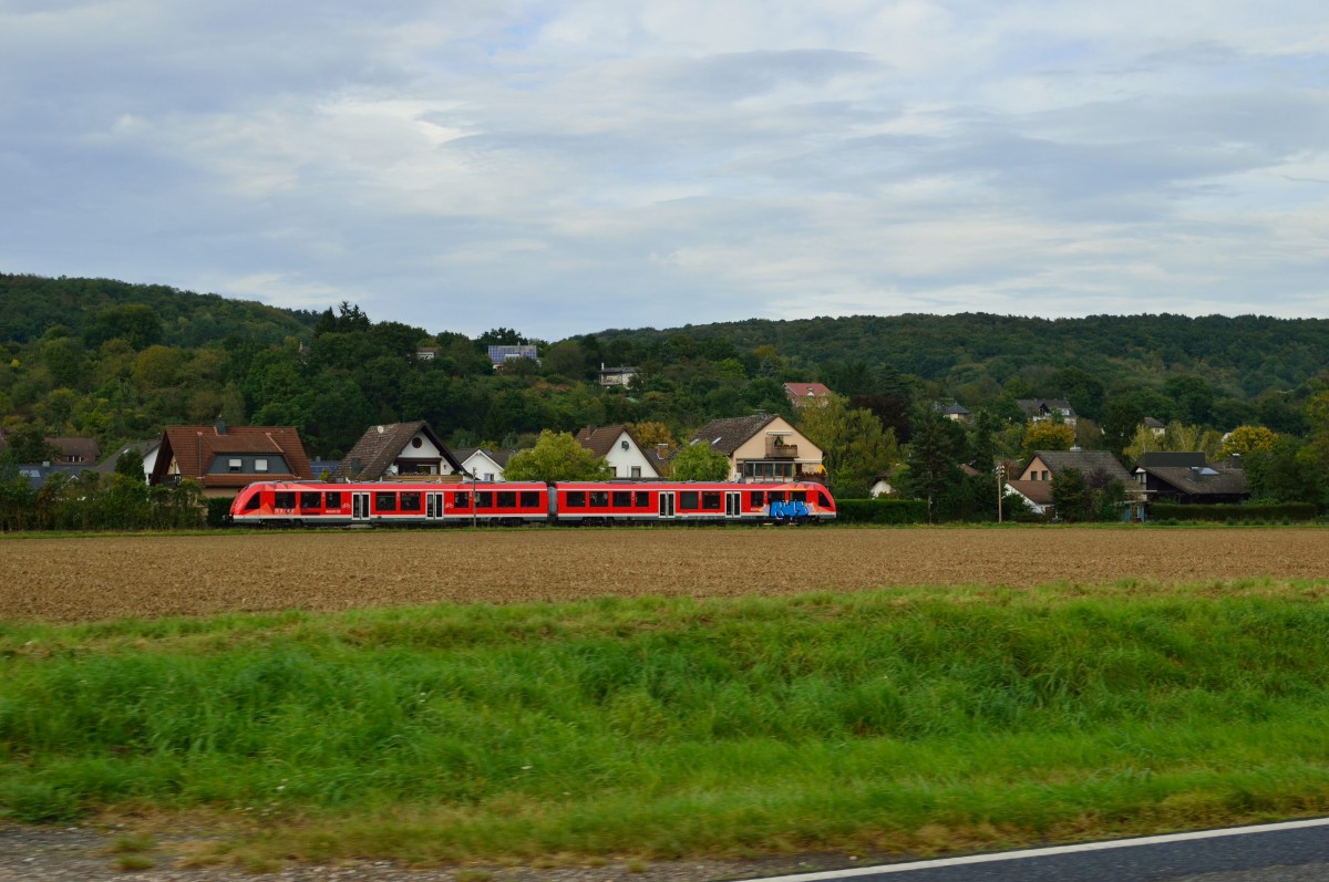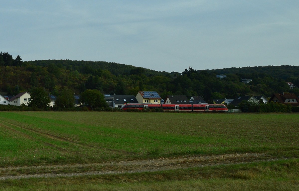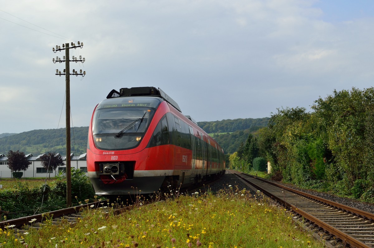 Dunkle Wolken ziehen über das Ahrtal und Bad Bodendorf hinweg als der 622 007 einfährt am Montag den 22.9.2014 auf seinem Weg nach Dernau. Andreas Strobel