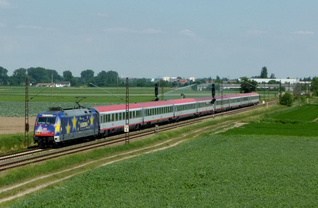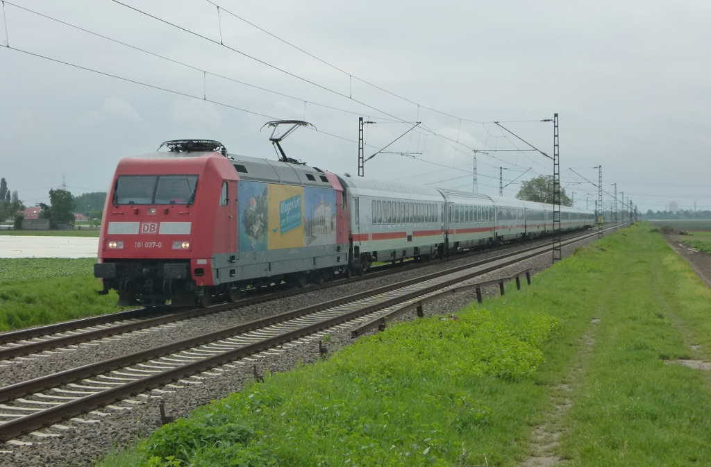 Klagenfurt 101 037-0 ist mdem IC 2218 Stuttgart - Hamburg Altona am 07.05.2012 bei Bobenheim-Roxheim