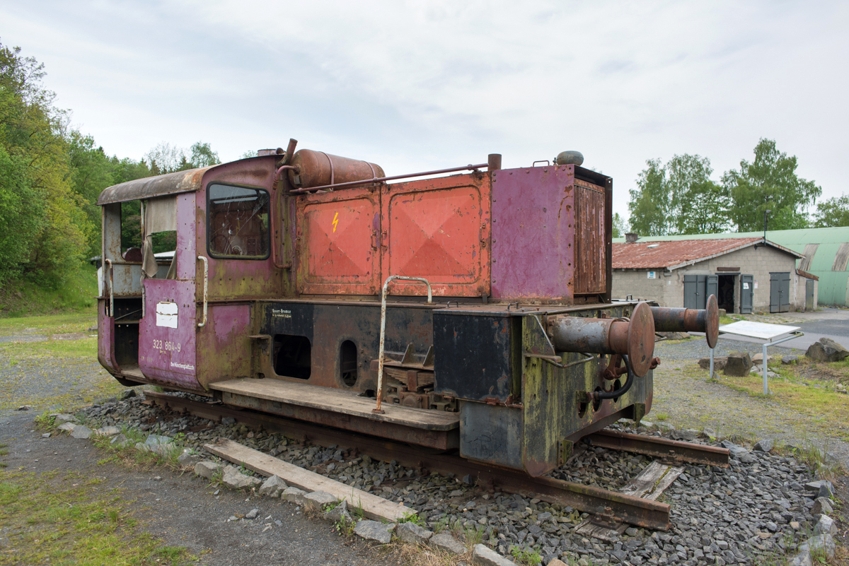 Denkmallok 323 864-9 (Köf II) im Stöffel-Park, Enspel/Ww am 18.07.2010. Die Lok wurde 1960 (Fabr.-Nr. 13232) bei der Firma Jung in Jungenthal bei Kirchen/Sieg gebaut und an die DB als "Köf 6794" ausgeliefert. 1968 erfolgte die Umzeichnung in 323 864-9 und nach der Endgültihgen Ausmusterung 1993 im BW Mönchengladbach an das Basaltwerk Jean Uhrmacher GmbH & Co. KG, Enspel (Westerwald) verkauft. Am 07.06.2010 erfolgte die Aufstellung als Denkmal. Armin Schwarz
