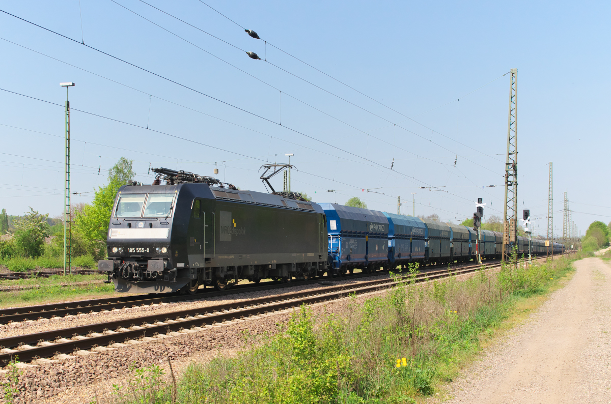 Sieben auf einen Streich. 6 Torpedowagen hatten wir schon als Suppendel gesehen aber 7 Stück, das ist Rekord. Die leider etwas vergammelte 37002 bringt die heiße Suppe aus Dillingen nach Völklingen, hier in Höhe des Stahlwerkes Bous. 21.04.2018 Ivonne Pitzius