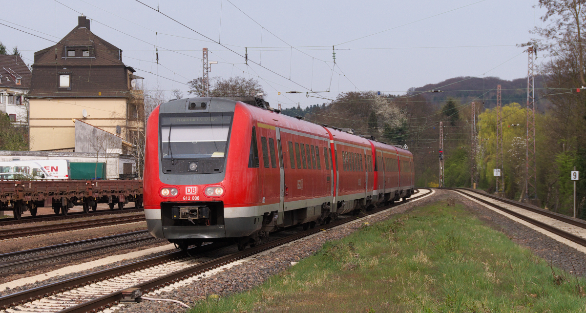 Ab Fahrplanwechsel Dezember 2014 kommt der vlex, ein Produkt von Netinera auf die Relation Saarbrücken - Mainz (Frankfurt/Main). Damit sind die Tage der Regioswinger der Baureihe 612 auf der Nahetalbahn gezählt. 612 008 und ein Schwestertriebwagen haben schon lange das Tal der Nahe verlassen und steuern im Sulzbachtal dem Ziel Saarbrücken entgegen. Bahnstrecke 3511 Bingenn Hbf. - Saarbrücken Hbf. in Dudweiler.