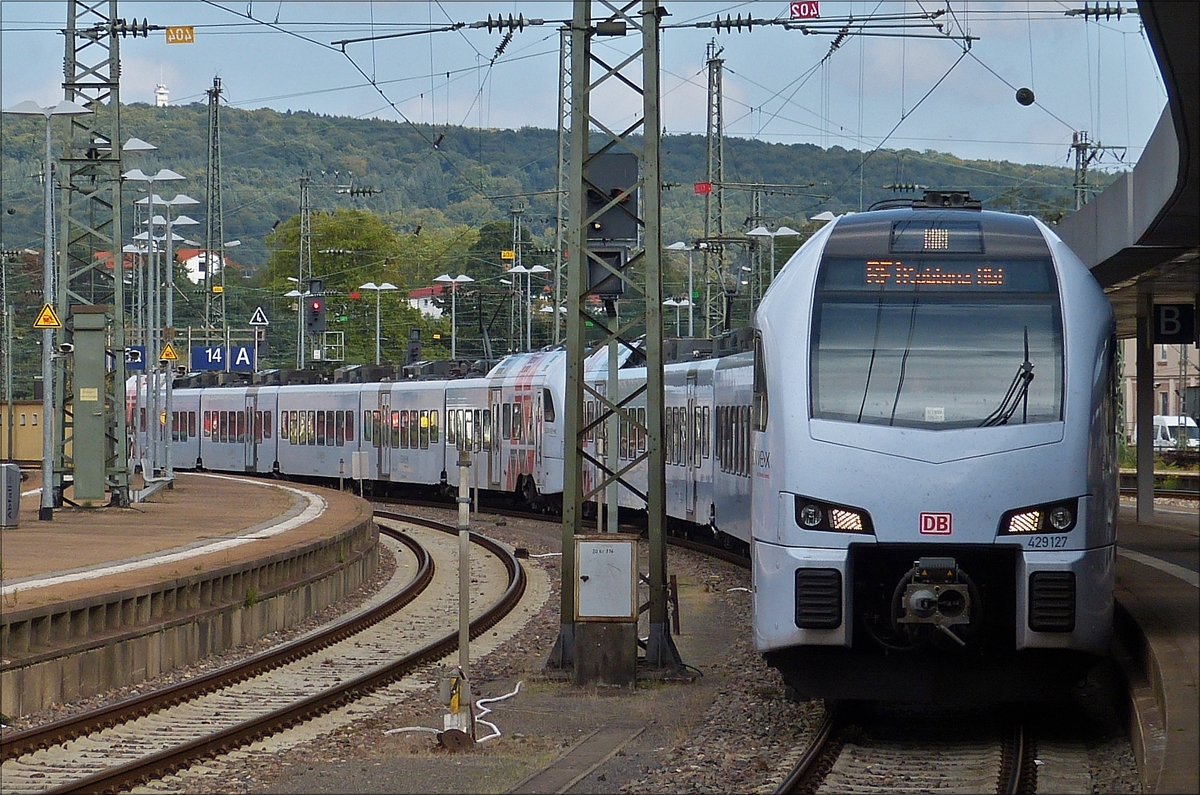 . Süwex Triebzug 429 127 fährt im Doppelpack in den Bahnhof von Saarbrücken ein um nach einem kurzen Halt seine Fahrt in Richtung Trier – Koblenz fortzusetzen. 10.09.2017. (Hans) De Rond Hans und Jeanny