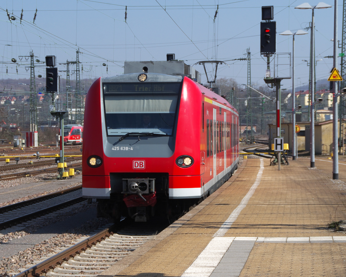 Ein Vertreter ist 425 118 und ein weiterer Vertreter, wie hier auf dem Bild zu sehen, ist 425 113. RB Saarbrücken - Kaiserslautern bei der Ausfahrt aus Saarbrücken Hbf. am 29.04.2016