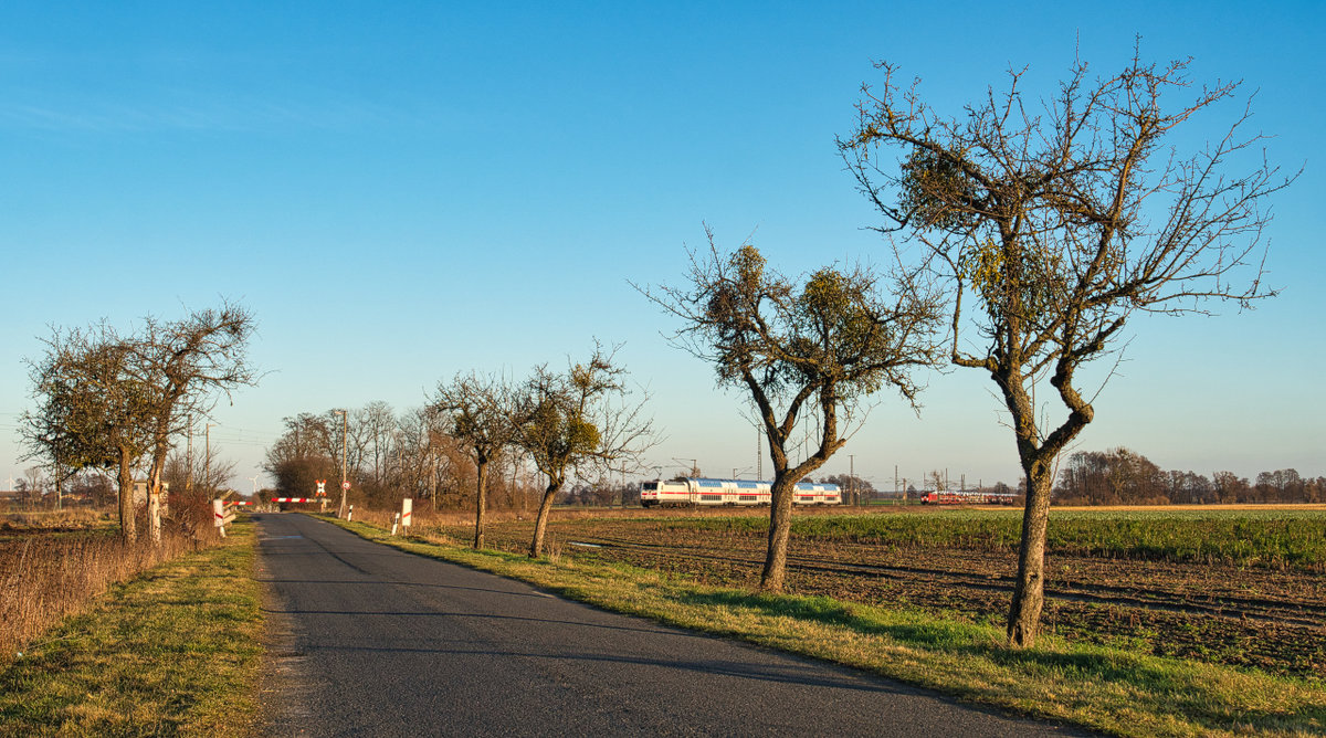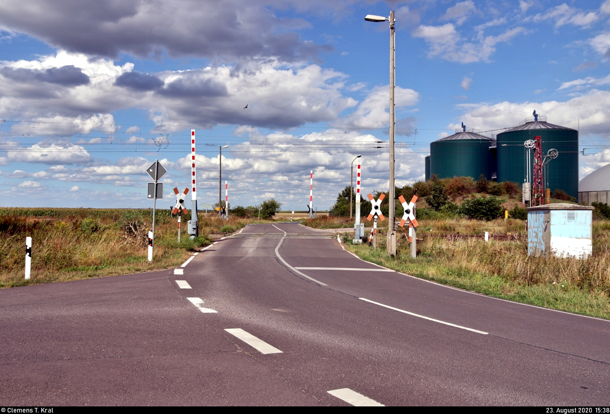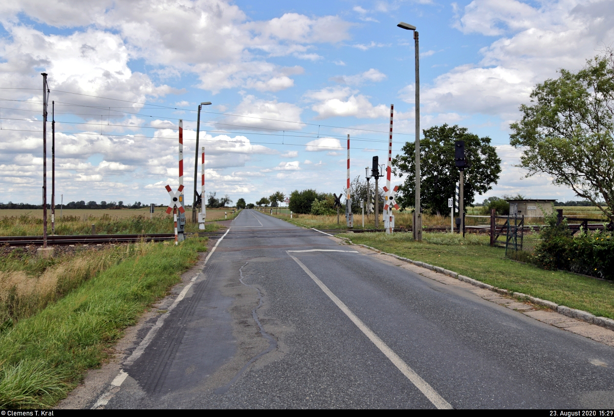 Blick auf den Bahnübergang (Bü) Bahnhofstraße in Güterglück.